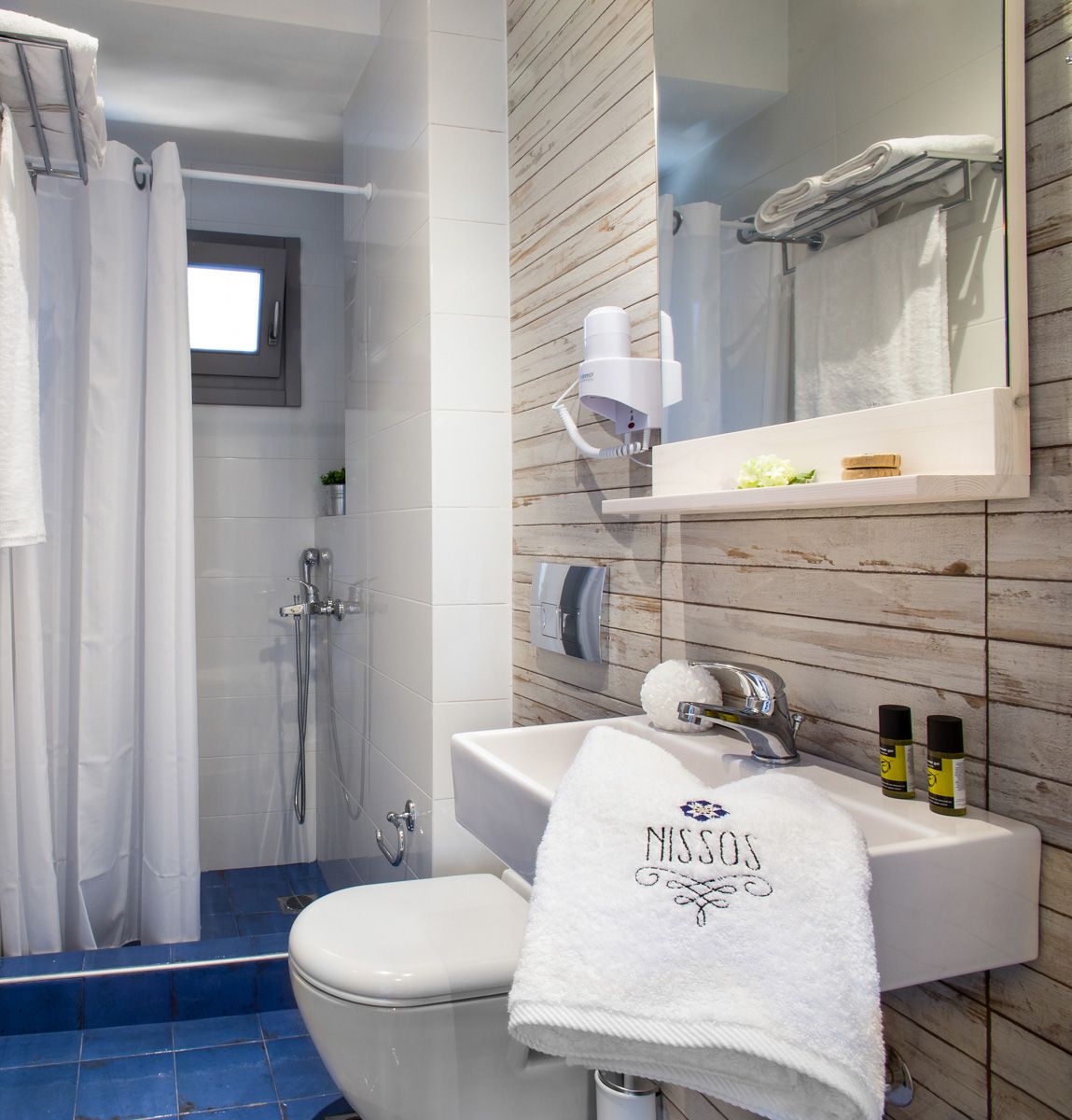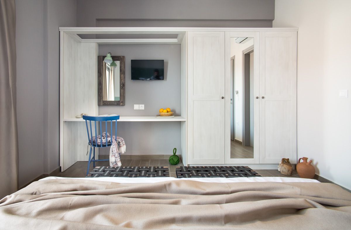 Five out of the nine available rooms have sea-view that makes the stay of our guests memorable. Nissos rooms offer double and triple rooms, fully furnished, with amenities such as air-condition, led TV, hair bath, care accessories, free Wi-Fi, safe, large private balcony, refrigerator etc.Moreover, for the easier mobility of our guests, an elevator is also available.