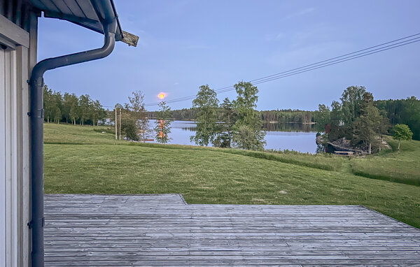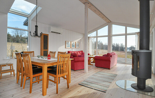 Genießen Sie entspannte Urlaubstage mit Panoramablick auf den See und direktem Zugang zum Wasser. Ihr Ferienhaus bietet Ihnen die ideale Kulisse für erholsame Tage inmitten unberührter Natur. Die Lage am Wasser, umgeben von Wiesen und Wäldern, schafft beste Voraussetzungen für einen ruhigen und naturnahen Aufenthalt. Entspannen Sie im offenen Wohnbereich mit großem Panoramafenster und Blick auf den See. Machen Sie es sich auf den Sofas bequem, genießen Sie das Feuer im Kaminofen oder versammeln Sie sich zum Essen am großen Esstisch. Ein separates Fernsehzimmer mit Sofa und Schlafboden sorgt für zusätzliche Rückzugsmöglichkeiten.