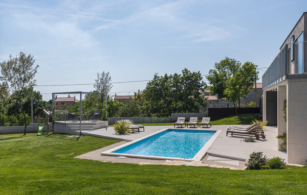 Das Haus befindet sich in der Region Barban an der Grenze zwischen "grünem" und "blauem" Istrien und ist eine gelungene Mischung aus istrischer Tradition und urbaner Architektur des 21. Jahrhunderts. Die untere Etage ist ein offener Raum, durch den sich Küche, Esszimmer und Wohnzimmer erstrecken. Es gibt auch eine Außenküche mit Grill. Im Obergeschoss befinden sich 3 Schlafzimmer mit dazugehörigen Badezimmern. Der schöne Pool im Außenbereich bietet Ihnen an heißen Sommertagen Erfrischung. Der Pool verfügt über eine Hydromassage-Ecke, ein Viertel des Pools ist mit 39 cm Wassertiefe für Kinder geeignet..