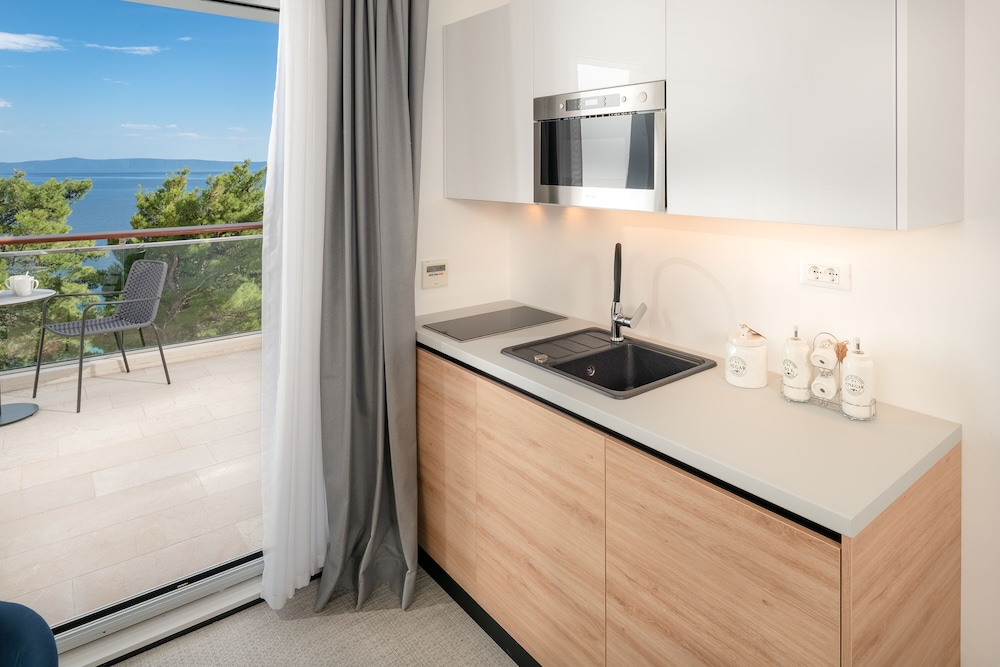 Noemia Apartments in Baška Voda liegt in Strandnähe, nur einen 1-minütigen Fußmarsch von Promenade von Baška Voda und 7 Gehminuten von Archäologische Sammlung entfernt. Dieses Aparthotel ist 0,6 km von Hafen von Baška Voda und 0,7 km von St.-Nikolaus-Statue entfernt. Fühl dich in einem der 21 Zimmer, die Kochnischen bieten, die über Herdplatte und Mikrowellen verfügen, wie zu Hause. Ein WLAN-Internetzugang (kostenlos) und 100 cm große Flachbildfernseher sorgen für Unterhaltung. Zur Austattung gehören Safes in Laptop-Größe und Schreibtische; die Zimmer werden täglich sauber gemacht. Entfernungen werden bis auf 0,1 Kilometer gerundet.