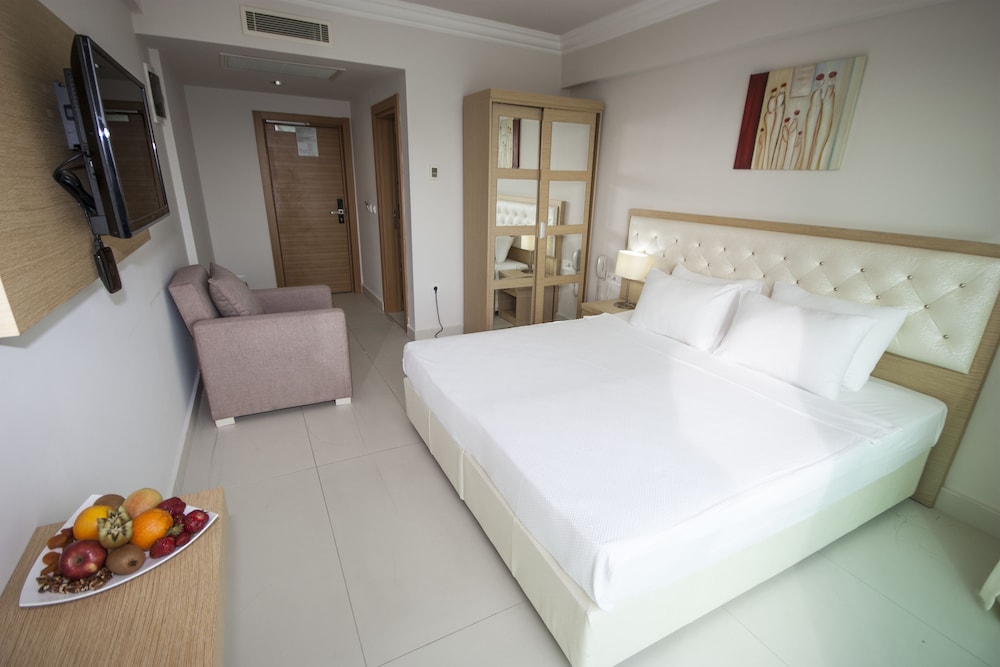 Dragut Point North Hotel in Bodrum liegt am Strand, nur einen 5-minütigen Fußmarsch von Sonnenuntergang Strand und 7 Gehminuten von Sunset Beach entfernt. Dieses Hotel mit All-inclusive-Leistungen ist 15 km von Yalıkavak Marina und 19 km von Bodrum Marina entfernt. Fühl dich in einem der 79 Zimmer, die Minibar und einen Flachbildfernseher bieten, wie zu Hause. Es gibt einen kostenfreien Internetzugang per Kabel und WLAN sowie Satellitenempfang. Es sind eigene Badezimmer mit Duschwannen vorhanden, die über kostenlose Toilettenartikel und Haartrockner verfügen. Zur Austattung gehören Safes und Wasserkocher mit Kaffee-/Teezubehör; die Zimmer werden täglich sauber gemacht. Entfernungen werden bis auf 0,1 Kilometer gerundet.