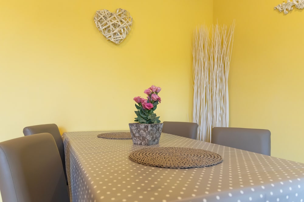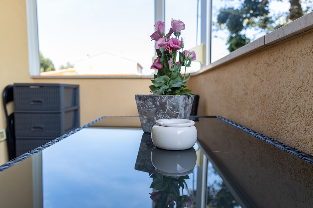 Dieses Apartment in Brtonigla lockt mit einem Aufenthalt, bei dem du nur eine 10-minütige Fahrt von Stancija Fava Weingut und Jachthafen von Novigrad entfernt bist. Dieses Apartment ist 6,7 km von Ghira Weingut und 7,1 km von Karpinjan Strand entfernt. Mach es dir in diesem Apartment gemütlich und freu dich auf die Ausstattung der Küche, die über einen großen Kühlschrank mit Gefrierfach und einen Ofen verfügt. Um in Verbindung mit den Daheimgebliebenen zu bleiben, steht dir ein WLAN-Internetzugang (kostenlos) zur Verfügung, während für deine Unterhaltung dank der breiten Auswahl an Kanälen per Satellitenempfang gesorgt ist. Vor Ort findest du jeglichen Komfort, darunter einen Zimmersafe und eine Mikrowelle. Entfernungen werden bis auf 0,1 Kilometer gerundet.