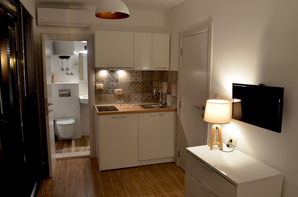 Casablanca Apartments in Budva (Maini) ist nur 10 Minuten Fußmarsch entfernt von: Platz Zwischen den Kirchen und Slovenska Plaža Ferienort. Dieses Apartment ist 22,3 km von Bucht von Kotor und 23,4 km von Porto Montenegro entfernt. Fühl dich in einem der 8 Zimmer, die individuell ausgestattet sind und Kochnischen bieten, die über große Kühlschränke/Gefrierfächer und Herdplatte verfügen, wie zu Hause. LCD-Fernseher mit Kabelempfang garantieren Unterhaltung und es gibt außerdem einen WLAN-Internetzugang (kostenlos). Zur Austattung gehören Safes und Schreibtische; die Zimmer werden täglich sauber gemacht. Entfernungen werden bis auf 0,1 Kilometer gerundet.