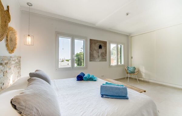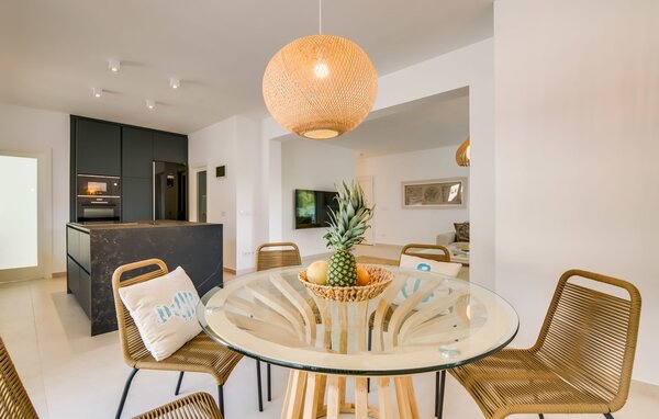 Von außen ein Klassiker, präsentiert sich die wunderschön gelegene Ferienresidenz mit einem frischen Erscheinungsbild im Innendesign. Der Stil ist eine berauschende Mischung aus stilvoll schlichtem und puristisch-nachhaltigem Geschmack im Rahmen eines harmonischen Farbspiels. Das offene Wohnkonzept im Erdgeschoss für die Funktionsbereiche Essen, Wohnen und Kochen überzeugt. Strandstil im Ess- und Wohnzimmer trifft auf dunklen Industrie-Look in der Küche mit Kochinsel und hochwertige Ausstattung im Gerätebereich. Das Haus ist ideal für zwei Generationen oder Familien geeignet. In drei Doppelzimmern (jedes Bett verfügt über zwei 90 cm breite Matratzen) können bis zu sechs Personen bequem wohnen. Ein besonderes Highlight ist das dritte Schlafzimmer im Obergeschoss, das über eine Innen- und alternativ eine Außentreppe erreichbar ist. Mit einer eigenen Küchenzeile, einem zusätzlichen Wohnzimmer, dem zweiten begehbaren Duschbad und einer Dachterrasse wird der Ruhebereich zum Studio mit luxuriöser Autonomie. Entspannung mit entspanntem Design-Ansatz am Meer unweit der Stadt – wenn Sie danach suchen, sind Sie im „Mar Bella Nou“ genau richtig!