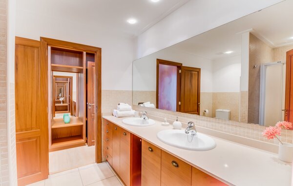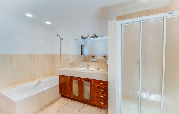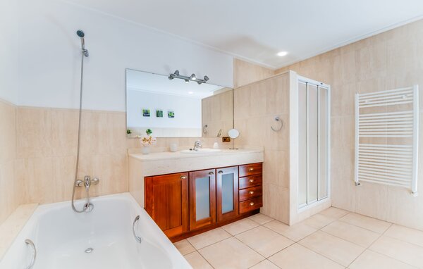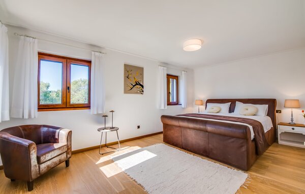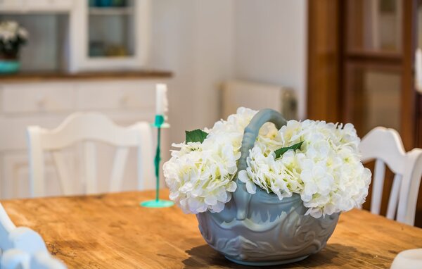 Im Inneren verfügt die Villa über ein helles, skandinavisch inspiriertes Design mit offenen Wohnbereichen. Im Erdgeschoss befindet sich ein geräumiger Wohnbereich mit einem Kamin, einem Flachbild-TV und einem Essbereich. Die separate Küche ist gut für große Gruppen ausgestattet, mit langen Arbeitsplatten und einfachem Zugang zur Terrasse. Ein Gästezimmer im Erdgeschoss sorgt für zusätzlichen Komfort. Im Obergeschoss bieten zwei Schlafzimmer viel Platz und teilen sich ein Badezimmer, während das dritte Schlafzimmer über ein großes 1,80 cm breites Bett und ein en-suite Badezimmer verfügt.