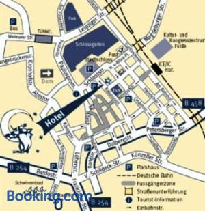 This 3-star, family-run hotel offers cosy accommodation in the heart of Fulda, less than 500 metres away from the Fuldaer Dom cathedral and the intercity railway station.During your stay at the Hotel Peterchens Mondfahrt, you will enjoy comfortable non-smoking rooms equipped with all of the standard amenities. You can also look forward to a delicious daily breakfast buffet, free calls to German landlines and free Wi-Fi internet access in all areas of the hotel.The Peterchens Mondfahrts check-in machines allow you to check in 24-hours a day.Take some time to discover Fuldas historic town centre. Attractions such as the Fuldaer Stadtschloss palace and the Benediktinerinnenabtei zur Heiligen Maria (Benedictine nunnery) are just steps away.Guests using a e-cars can use the hotel's charger.Please inform Hotel Peterchens Mondfahrt in advance of your expected arrival time. You can use the Special Requests box when booking, or contact the property directly with the contact details provided in your confirmation.If you plan to arrive later than 19:00, please contact the hotel in advance to find out your password.