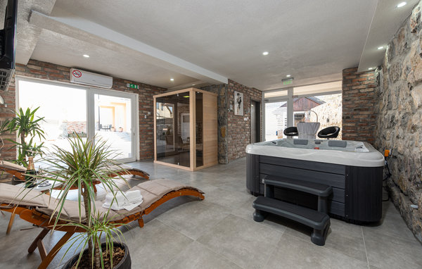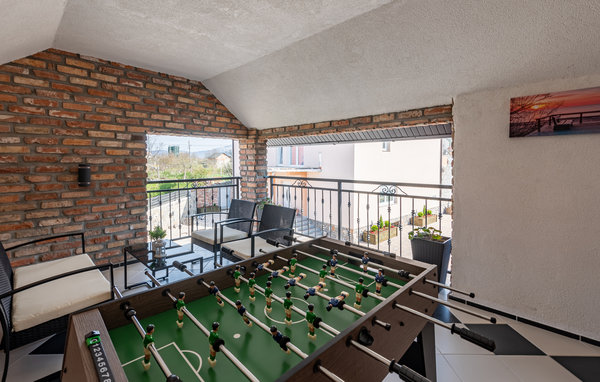 Freuen Sie sich auf einen wundervollen Urlaub, gemeinsam mit Ihren Lieben in diesem schönen Ferienhaus in Gracac. Die komfortable und einladende Unterkunft bietet Ihnen und Ihrer Familie einen schönen Rahmen, um sich gemeinsam zu entspannen. Nutzen Sie die angenehmen Räumlichkeiten, wie die Küche oder das einladende Poolhaus, zum Kochen, Spielen und Relaxen. Genießen Sie auf Ihrer überdachen Terrasse sowohl den Ausblick auf die Landschaft als auch Ihre Mahlzeiten im Freien. Ein Gemeinschaftspool bietet Ihnen an warmen Tagen wohltuende Abkühlung und lädt Sie ein sich auf dem Sonnendeck in der Sonne zu rekeln. An kühleren Tagen können Sie im Wellnessraum die Seele baumeln lassen. Nutzen Sie die Sauna oder den Whirlpool und spielen Sie später mit neuer Energie eine Partie Tischfußball.