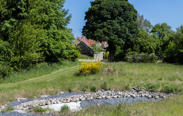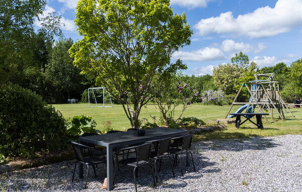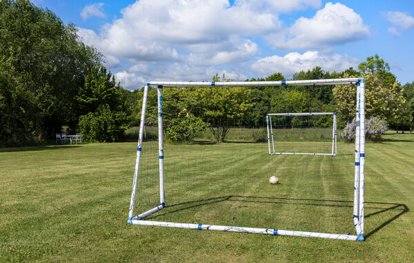 Draußen erwartet Sie ein romantischer Garten mit Blumen, alten Bäumen und großzügigen Flächen zum Ballspielen. Machen Sie es sich mit einem guten Buch auf der Gartenbank bequem, spielen Sie eine Runde Fußball oder werfen Sie den Grill an, während die Kleinen die Rutsche hinuntersausen und auf dem Trampolin springen.