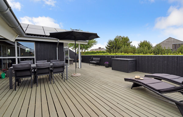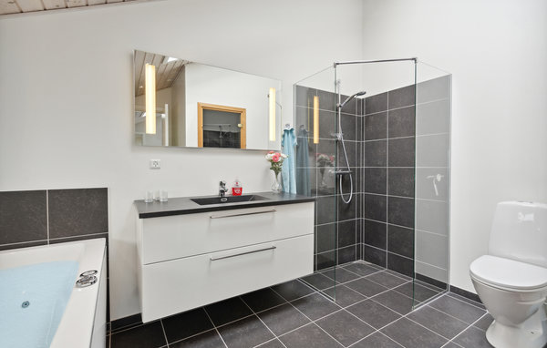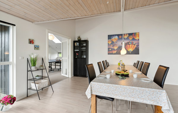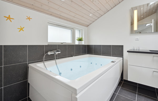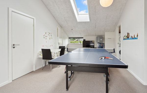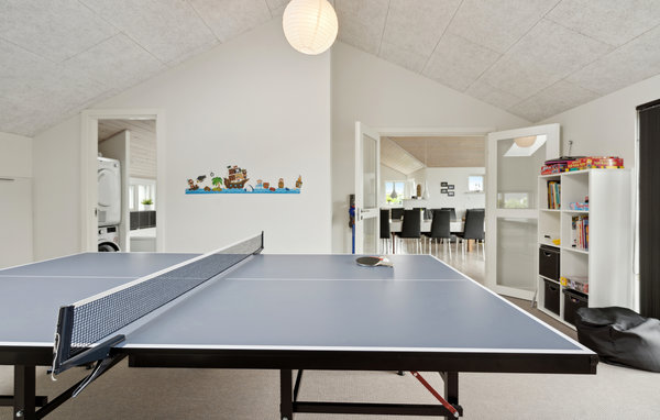 Dieses schöne Ferienhaus befindet sich in einem Ferienhausgebiet am Flovt Strand, das Sie mit seiner wunderschönen Natur und dem schönen Sandstrand zu einem tollen Urlaub einlädt. Großflächige Fenster sorgen für einen schönen Einfall von Tageslicht, machen Sie es sich in den hellen Räumen so richtig gemütlich. Nach einem herrlichen Tag am Strand können Sie im Whirlpool abtauchen oder in der hauseigenen Sauna entspannen. Nach einem guten gemeinsamen Abendessen bringt eine Partie Tischtennis den Kreislauf wieder in Schwung.