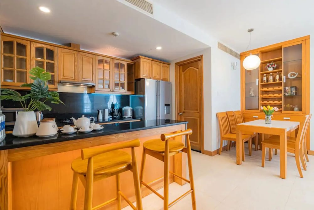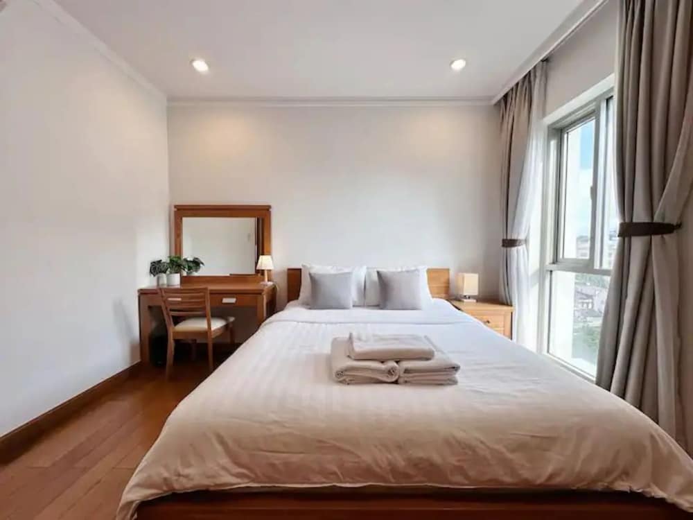 Emerald Pavillon Suites Saigon in Ho-Chi-Minh-Stadt (District 3) ist nur 5 Minuten Fahrt entfernt von: Ben-Than-Markt und Pham Ngu Lao Street. Dieses Hotel ist 1,6 km von Bui Vien Fußweg und 1,8 km von Dong Khoi Street entfernt. Fühl dich in einem der 10 klimatisierten Zimmer, die Kochnischen bieten, die über Kühlschränke und Herdplatte verfügen, wie zu Hause. Die Zimmer sind mit Memory-Foam-Betten ausgestattet. 35 Zoll groáe LCD-Fernseher mit Kabelempfang sorgen fr gute Unterhaltung; auáerdem steht ein WLAN-Internetzugang (kostenlos) zur Verfgung. Zur Austattung gehören Schreibtische und kostenloses Mineralwasser; die Zimmer werden täglich sauber gemacht. Entfernungen werden bis auf 0,1 Kilometer gerundet.