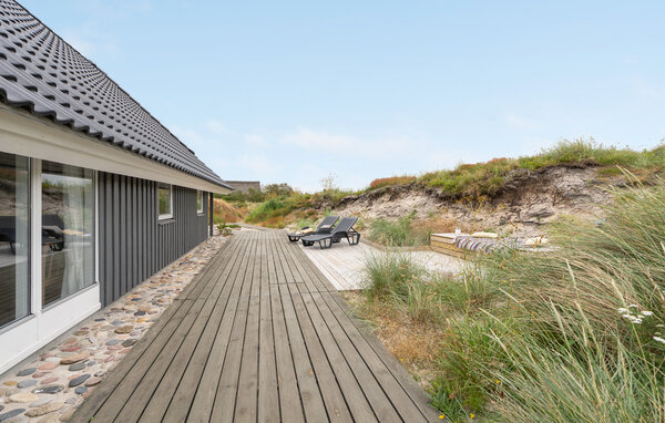 In diesem Ferienhaus in Bjerregård werden Sie sich sofort wie zu Hause fühlen. Die einladenden Innenräume sind warm und gemütlich gestaltet, wobei die angenehme Einrichtung durch den charmanten Holzofen perfekt ergänzt wird. Genießen Sie erholsame Stunden in der Sauna und lassen Sie den Alltag hinter sich. Das Haus ist von malerischen Dünen umgeben und bietet Ihnen eine großzügige Terrasse mit Sonnendeck – ideal, um die frische Luft und die atemberaubende Natur zu genießen. Egal ob beim morgendlichen Kaffee oder bei einem Glas Wein am Abend, hier finden Sie Ihre persönliche Ruheoase.