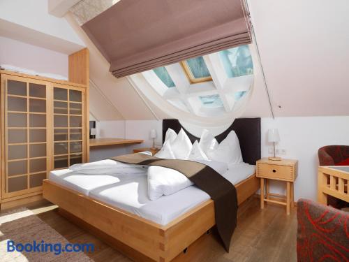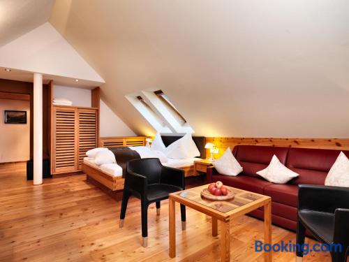 Featuring wooden floors and bright wooden furniture, the spacious rooms at Hotel Goldener Adler include cable TV, a minibar, a safe, and a bathroom with bathrobes and a hairdryer.