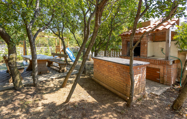 Die Innenräume des Hauses sind geräumig und komfortabel auf zwei Ebenen und ein paar Stufen führen vom Flur zum Wohnzimmer. Es gibt 3 Schlafzimmer, ein großes Wohnzimmer mit Küche und zwei Badezimmer. Von dort gelangen Sie auf eine große offene Terrasse, auf der Sie entspannen und speisen können. Im Garten, im Schatten eines Baumes, gibt es eine weitere Terrasse mit Grill. Lesen Sie ein Buch oder trinken Sie einen Cocktail, während Sie den Schatten auf den Sonnenliegen genießen. Das Haus verfügt über eine Klimaanlage, WLAN und einen Innenkamin.
