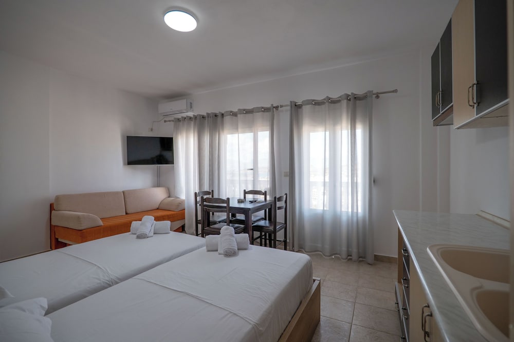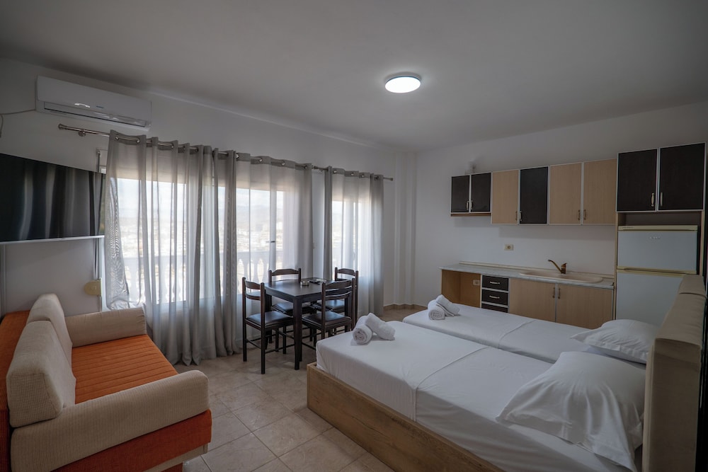 Hotel Horizon Ksamil in Ksamil ist nur eine 5-minütige Fahrt von Ksamil-Inseln und Butrint National Park entfernt. Dieses Hotel ist 46 km von Hafen von Korfu und 2,2 km von Ionisches Meer entfernt. Fühl dich in einem der 8 Zimmer, die Kochnischen bieten, wie zu Hause. Ein WLAN-Internetzugang (kostenlos) steht zur Verfügung. Entfernungen werden bis auf 0,1 Kilometer gerundet.