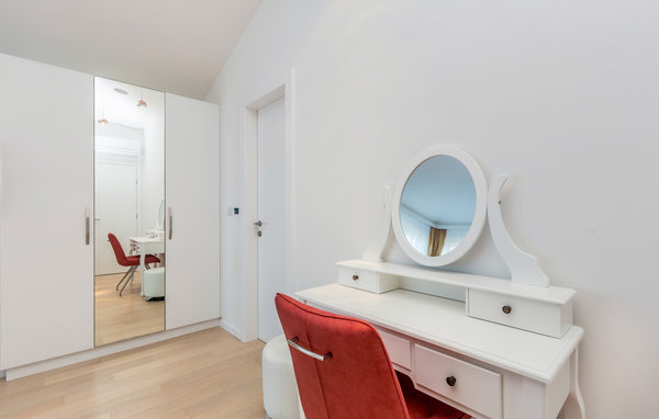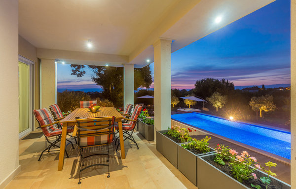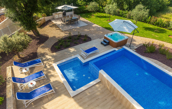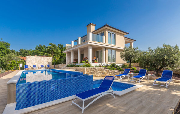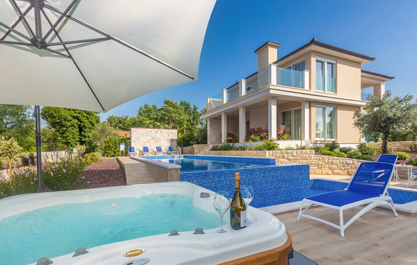 Auf der sonnenverwöhnten Insel Krk und nahe von der Stadt Malinska liegt im kleinen Dorf Ljutiči dieses schöne Ferienhaus mit eigenem Pool. Das Haus ist geräumig, stilvoll eingerichtet und erstreckt sich über drei Etagen. Im Untergeschoss sind eine Sauna mit Erholungsraum und Unterhaltungszimmer mit Billard und Tischfußball. Das Erdgeschoss verfügt über ein großes Wohnzimmer mit Küche und ein Schlafzimmer, während sich noch drei Schlafzimmer im Obergeschoss befinden. Es sind ebenfalls mehrere Terrassen vorhanden, auf denen Sie entspannen können. Im Garten erwartet Sie ein Infinity-Pool und die jüngsten Gäste können sich im Kinderbecken und mit Spielsachen die Zeit vertreiben. Besuchen Sie während Ihres Aufenthaltes unbedingt einen der Strände von Malinska wo Sie auch Geschäfte, Souvenirläden, Restaurants und Cafés finden.
