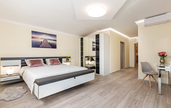 Träumen Sie davon, im exklusiven Ferienhaus aufzuwachen, umgeben von Natur und mediterranem Flair? Dann ist dieses erstklassige Domizil die richtige Wahl für Sie. Dieses eindrucksvolle Ferienhaus lässt absolut keine Wünsche offen. Egal ob großer Infinity-Pool mit separaten Kinderbecken, Aktivitätsraum mit Billard, Darts und Tischtennis sowie Wellnessraum mit Whirlpool für sechs Personen und finnischer Sauna, es ist alles vorhanden. Auch den kleinen Gästen wird in diesem Traumhaus nicht langweilig, denn hier sorgen Trampolin, Rutsche, Schaukel, PS4 und Bällchenpool für Spiel und Spaß. Die Innenräume sind voll klimatisiert und die Ausstattung wird auch die anspruchsvollsten Gäste zufrieden stellen. Die nächsten Strände befinden sich in den Orten Duga Uvala und Krnica. Empfehlenswert ist ein Besuch der Städte Pula, Medulin und Poreč.
