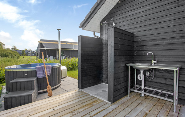 Nach einem kurzen Spaziergang erreichen Sie den wunderschönen Sandstrand, an dem Sie lange Spaziergänge machen oder an warmen Tagen im Meer baden können. Nach einem Tag am Strand lädt die große Holzterrasse des Hauses zum Entspannen oder zu einem schönen Abendessen ein. Vielleicht ist Ihnen etwas bei einer Angeltour ins Netz gegangen. Dank des Filetierplatzes am Haus können Sie Ihren Fang leicht für das Abendessen vorbereiten. Lassen Sie anschließend den Tag im Wildnisbad draußen ausklingen.