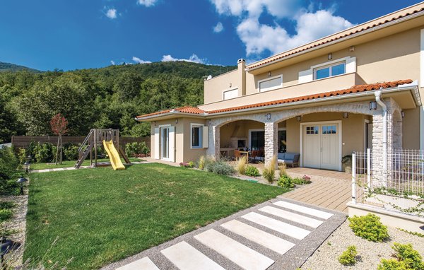 Auf einem Hügel über der Riviera von Opatija haben fünf luxuriös ausgestattete Villen ihren Platz gefunden, und CKO053 ist eine von ihnen. Jede Villa verfügt über eigenen Pool im umzäunten Garten. Sie liegen neben dem Wald, in der Nähe des Naturparks Učka und bieten Ihnen deswegen in einer naturnahen Umgebung einen fantastischen Blick auf die Kvarner Bucht. Zum extrem geräumigen Inneren gehört ein Mini-Wellness, die Außenbereiche sind ideal zum Sonnenbaden am Pool. Die Schlafzimmer sind im Obergeschoss und jedes hat sein eigenes Badezimmer: die obere Terrasse ist ideal für den Morgenkaffee mit ersten Sonnenstrahlen geeignet. Jede dieser Villen ist die perfekte Wahl, um sich abseits vom Massentourismus zu erholen, aber sie sind nur 10 Minuten von der schönen Strände und berühmten touristischen Destinationen der Riviera von Opatija entfernt.