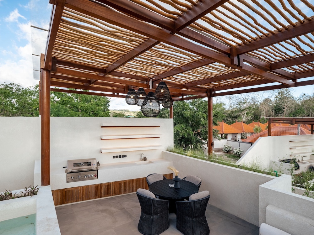 Adaya Boutique Villa in Pecatu ist nur eine 10-minütige Fahrt von Pura Uluwatu und Strand von Bingin entfernt. Diese Villa ist 3,3 km von Strand von Padang Padang und 18,6 km von Strand von Nusa Dua entfernt. Gönn dir einen Aufenthalt in einem der 5 Zimmer, die über Privatpools und einen Flachbildfernseher verfügen. Die Zimmer haben eigene möblierte Balkone oder Patios. In den Kochnischen finden sich Kühlschränke, Öfen und Herdplatte. Ein WLAN-Internetzugang (kostenlos) steht zur Verfügung. Entfernungen werden bis auf 0,1 Kilometer gerundet.