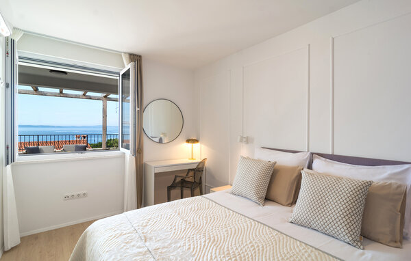 Willkommen in dieser lichtdurchfluteten Ferienwohnung an der dalmatinischen Küste, die Sie mit wohnlicher Gemütlichkeit begrüßt. Bereiten Sie in der voll ausgestatteten Küche Ihre Mahlzeiten zu und genießen Sie diese am stilvollen Essplatz, während die wohltuende Meeresbrise durch die Räume strömt. Veranstalten Sie Spieleabende im freundlichen Wohnbereich oder machen Sie es sich mit einem guten Buch auf der Couch gemütlich.