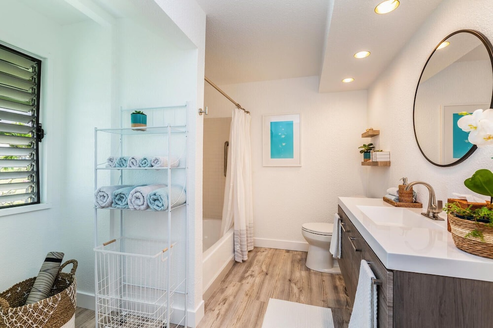Diese Wohnung in Princeville liegt nur eine 15-minütige Fahrt von Hanalei Bay und Island Sails entfernt. Diese Ferienwohnung ist 18,1 km von Na Pali Coast State Park und 1,7 km von Princeville Makai Golf Club entfernt. Diese Ferienwohnung ist individuell ausgestattet und lädt dazu ein, es sich gemütlich zu machen. Freu dich in deinem Privatbereich auf einen Balkon. Mit dem Internetzugang per Kabel (kostenlos) bleibst du auch während deines Aufenthalts in Verbindung. Das Badezimmer ist mit einer Badewanne oder Dusche und Designer-Toilettenartikeln versehen. Entfernungen werden bis auf 0,1 Kilometer gerundet.