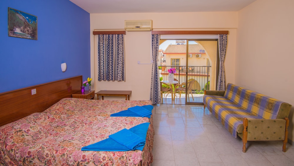 Windmills Hotel Apartments in Paralimni liegt in Strandnähe, nur 10 Minuten Fahrt von Fig Tree Bay und Küstenpromenade von Protaras entfernt. Dieses Aparthotel für Familien ist 14,2 km von Strand von Nissi und 0,6 km von Kalamies Strand entfernt. Fühl dich in einem der 88 Zimmer, die Kochnischen bieten, die über Kühlschränke und Herdplatte verfügen, wie zu Hause. Die Zimmer haben eigene Balkone. Zur Austattung gehören Telefone ebenso wie Schreibtische und separate Sitzecken. Entfernungen werden bis auf 0,1 Kilometer gerundet.