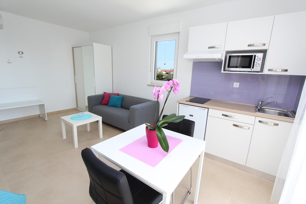 Studio Emanuel in Rovinj ist nur 10 Gehminuten von St. Thomas Kirche und Straße Carrera entfernt. Dieses Apartment ist 0,7 km von Kirche der Gnädigen Muttergottes und 0,9 km von Franziskanerkloster entfernt. Fühl dich in einem der 4 klimatisierten Zimmer, die Kochnischen bieten, die über Kühlschränke und Herdplatte verfügen, wie zu Hause. Die Zimmer haben eigene Balkone. 40 Zoll groáe Flachbildfernseher mit Satellitenempfang sorgen fr gute Unterhaltung; auáerdem steht ein WLAN-Internetzugang (kostenlos) zur Verfgung. Zu den Highlights gehören Mikrowellen und Wasserkocher mit Kaffee-/Teezubehör. Entfernungen werden bis auf 0,1 Kilometer gerundet.