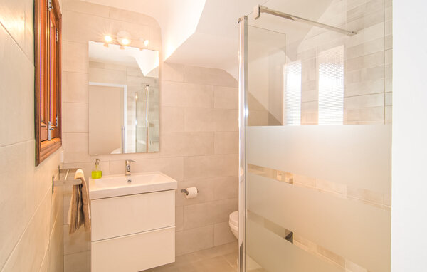 Im Inneren bietet das helle Wohnzimmer mit Kamin einen ruhigen Rückzugsort, egal ob Sie ein Buch genießen oder fernsehen. Die voll ausgestattete Küche mit einem Esstisch in der Nähe ermöglicht es Ihnen, Mahlzeiten in aller Ruhe zuzubereiten. Vier Doppelzimmer, davon eines mit eigenem Bad und Zugang zur Terrasse. Zwei Zimmer verfügen über zwei Einzelbetten, während das kleinste über ein Etagenbett für Kinder verfügt. Mit zwei zusätzlichen Bädern sorgt diese Villa für Komfort für alle. Ein perfekter Familien- oder Gruppenurlaub in der Nähe des Strandes.