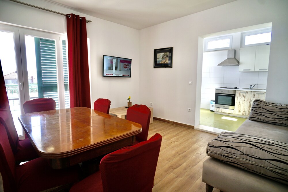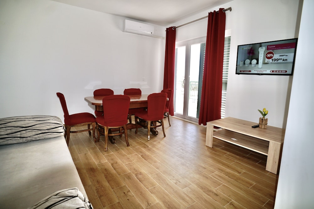 Apartments Calma in Seget liegt in Flughafennähe, nur 5 Autominuten von Baotic Marina und Grüner Markt entfernt. Dieses Apartment ist 30,3 km von Diokletianspalast und 30,6 km von Bacvice Strand entfernt. Fühl dich in einem der 4 klimatisierten Zimmer, die Küchen bieten, die über Kühlschränke und Öfen verfügen, wie zu Hause. Flachbildfernseher mit Satellitenempfang garantieren Unterhaltung und es gibt außerdem einen WLAN-Internetzugang (kostenlos). Zu den Highlights gehören Mikrowellen und Wasserkocher mit Kaffee-/Teezubehör. Auf Wunsch erhältst du außerdem Folgendes: Babybetten (kostenlos). Entfernungen werden bis auf 0,1 Kilometer gerundet.