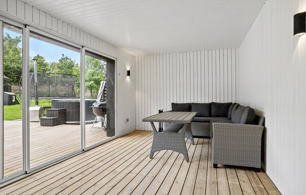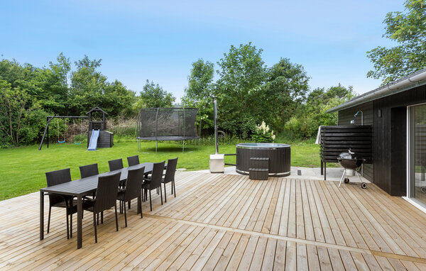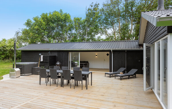 Gehen Sie auf die große Holzterrasse, die mit einem langen Esstisch und viel Platz zum Verweilen ausgestattet ist. Nutzen Sie den überdachten Außenbereich mit Loungemöbeln oder gönnen Sie sich ein warmes Bad im Finnischen Holzbad. Die geschützte Lage auf dem weitläufigen Grundstück sorgt für Privatsphäre und Ruhe.