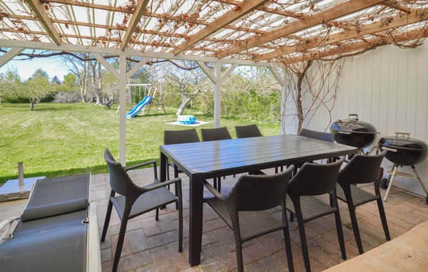 Im Freien finden Sie eine große, überdachte Terrasse mit Gartenmöbeln, Sonnenliegen und Grill. Hier können Sie an warmen Sommerabenden die ganze Familie zu gemütlichen Grillabenden versammeln und dabei den Blick auf den grünen Garten genießen. Die jüngsten in der Familie werden den Garten lieben, in dem sie viele Stunden mit Schaukeln und Rutsche oder im Sandkasten und dem Spielturm verbringen können. Hier wird es Ihnen bestimmt nicht langweilig!