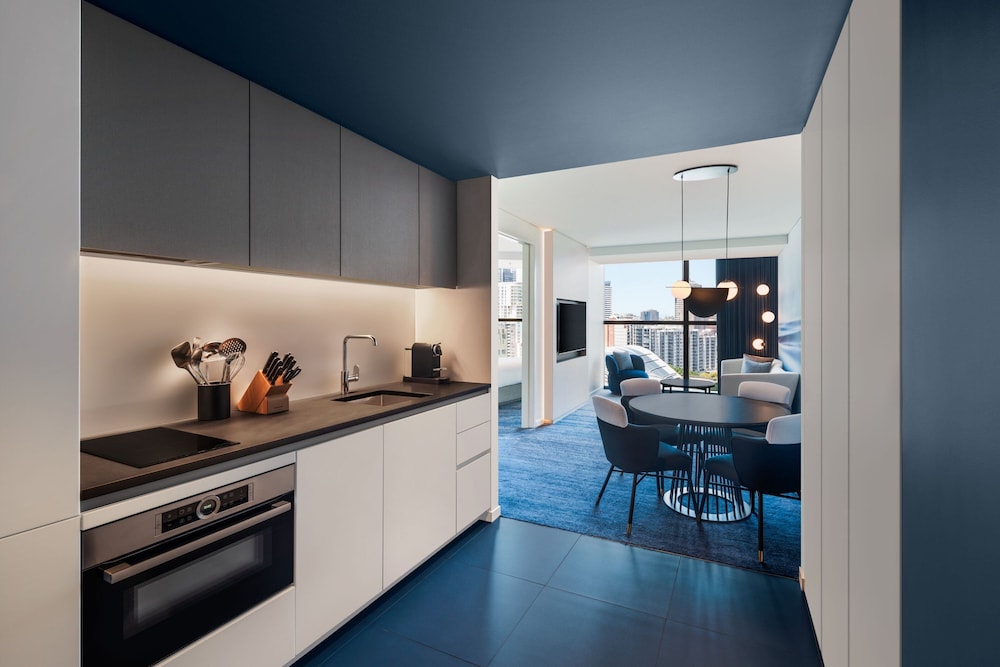 W Sydney besticht durch eine zentrale Lage in Sydney, nur 6 Gehminuten von QVB und 11 Gehminuten von King Street Wharf entfernt. Dieses Hotel im luxuriösen Stil ist 2,2 km von Royal Botanic Gardens und 2,3 km von Circular Quay entfernt. Fühl dich in den 588 Zimmern, die individuell eingerichtet sind und Minibar und Espressomaschine bieten, wie zu Hause. Dein Pillowtop Bett bietet Daunenbettdecken und hochwertige Bettwaren. Der Internetzugang per Kabel und WLAN ist kostenfrei und LED-Fernseher mit Kabelempfang sorgen für gute Unterhaltung. Die Badezimmer mit Badewannen und Duschen (separat) verfügen über Komfortbadewannen und Regenduschen. Entfernungen werden bis auf 0,1 Kilometer gerundet.