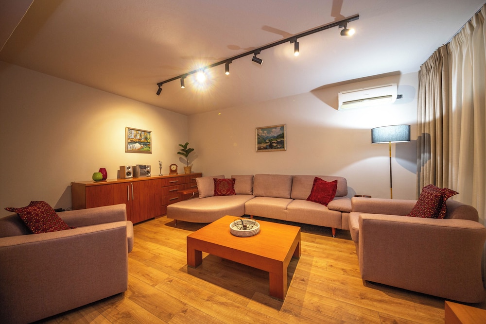 Dieses Apartment besticht durch eine zentrale Lage in Tirana, nur 5 Minuten Fahrt entfernt von: Verteidigungsministerium und Skanderbeg-Platz. Dieses Apartment ist 0,5 km von Ehemalige Residenz von Enver Hoxha und 1 km von Kongresspalast entfernt. Mach es dir in diesem Apartment mit Klimaanlage gemütlich. In der Küche, die über einen großen Kühlschrank mit Gefrierfach und einen Ofen verfügt, wirst du dich wie zu Hause fühlen. Freu dich in deinem Privatbereich auf einen Balkon. Ein 42-cm-Smart-TV mit Kabelempfang sorgt für deine Unterhaltung, während du von dem WLAN-Internetzugang (kostenlos) profitieren kannst, um mit Freunden und Familie in Kontakt zu bleiben. Vor Ort findest du jeglichen Komfort, darunter eine separate Sitzecke und eine Mikrowelle. Entfernungen werden bis auf 0,1 Kilometer gerundet.