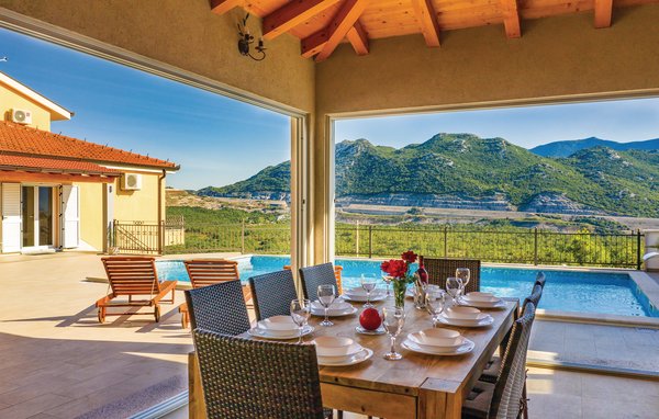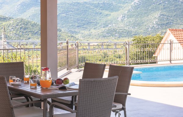 Dieses schöne Ferienhaus befindet sich im dalmatischen Hinterland, in der Nähe der Stadt Vrgorac. Das Haus ist gut für einen angenehmen Aufenthalt ausgestattet. Es erstreckt sich über drei Etagen und hat Innentreppen. Im Erdgeschoß befindet sich der Freizeitraum. Auf der ersten Etage befinden sich ein Schlafzimmer und die Küche mit Wohnzimmer, während die restlichen Schlafzimmer auf der zweiten Etage untergebracht sind. Auf dem großen, eingezäunten Grundstück steht Ihnen der Pool zur Verfügung, der ideal zum Entspannen ist. Neben dem Pool befindet sich die Sommerküche. Genießen Sie einen Spaziergang entlang der gut markierten Wanderwege. Besuchen Sie auch die Stadt Vrgorac und die schönen Kiesstrände der Makarska Riviera.