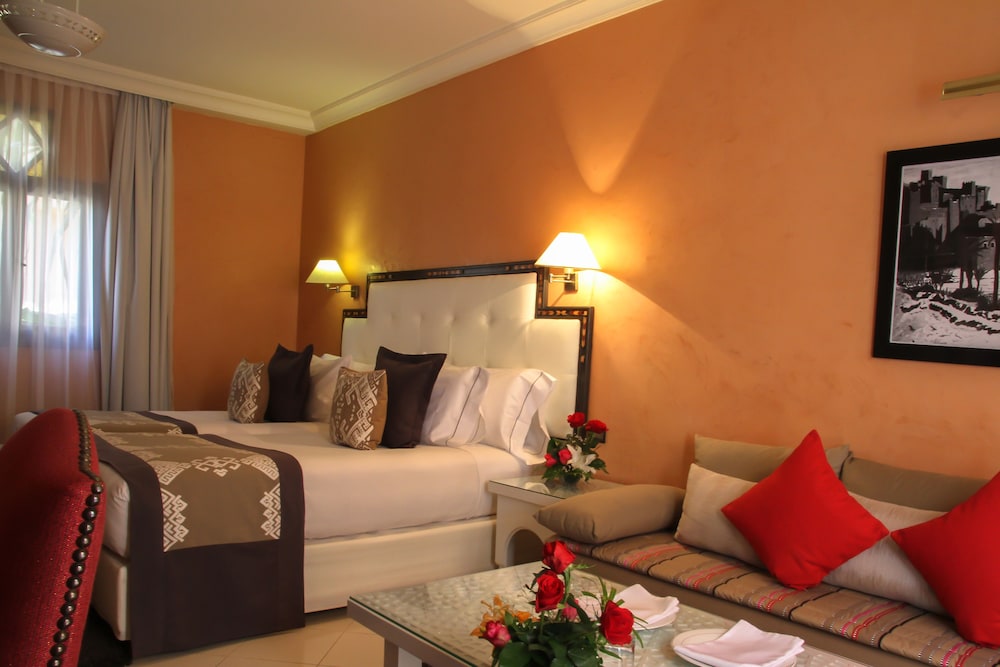 Zum Angebot gehören ein kostenloser Internetzugang per Kabel, ein Businesscenter und ein Express-Check-in. Wenn du eine Veranstaltung in Ouarzazate planst, ist dieses Hotel eine gute Wahl, denn zu den 4306 Quadratfuß (400 Quadratmeter) großen Veranstaltungsräumlichkeiten zählen Konferenzfläche und ein Tagungsraum. Ein Flughafentransfer ist verfügbar (gegen Gebühr). Entspann dich im Wellnessbereich, der Massagen, Körperbehandlungen und Gesichtsbehandlungen bietet. Sicher ist bei folgenden Freizeitmöglichkeiten auch für dich das Richtige dabei: Fitnesscenter, Außenpool und Whirlpool. Kostenloses WLAN, ein Concierge-Service und Babysitting (gegen Gebühr) stehen ebenfalls zur Verfügung. Entspann dich mit einem erfrischenden Getränk an der Bar/Lounge oder der Poolbar. Gegen Gebühr wird täglich von 06:00 Uhr bis 10:00 Uhr ein Frühstücksbuffet angeboten.Du wirst gebeten, die folgenden Gebühren direkt in der Unterkunft zu zahlen. Gebühren beinhalten möglicherweise geltende Steuern:
