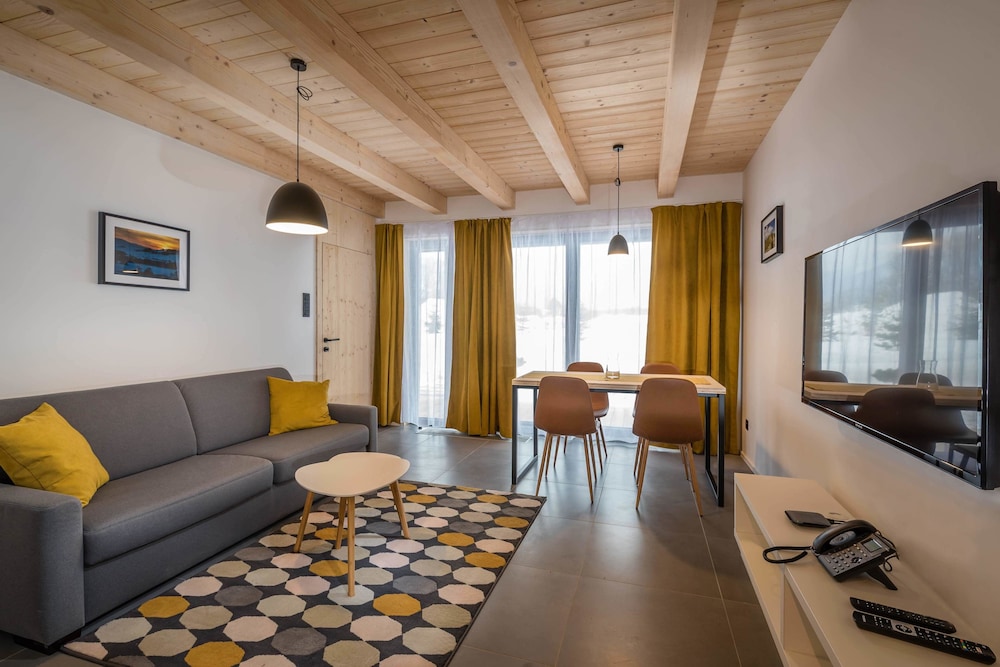 Demänová Rezort in Liptovsky Mikulas liegt im Nationalpark, nur 5 Autominuten von Námestie Osloboditeľov und Naturschutz- und Höhlenforschungsmuseum entfernt. Dieses Aparthotel für Familien ist 4,4 km von Galeria P.M. Bohuna und 5,3 km von Liptovský Mara entfernt. Fühl dich in einem der 45 Zimmer, die Kochnischen bieten, die über Kühlschränke und Herdplatte verfügen, wie zu Hause. Ein WLAN-Internetzugang (kostenlos) und 55 Zoll große Flachbildfernseher sorgen für Unterhaltung. Zur Austattung gehören Schreibtische und Mikrowellen; die Zimmer werden auf Anfrage sauber gemacht. Entfernungen werden bis auf 0,1 Kilometer gerundet.