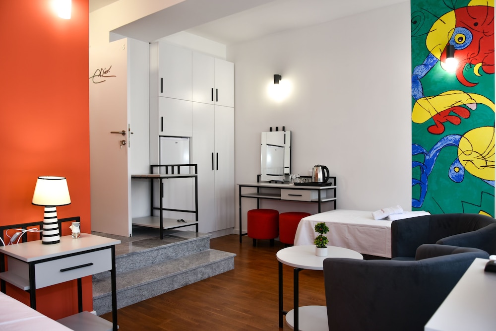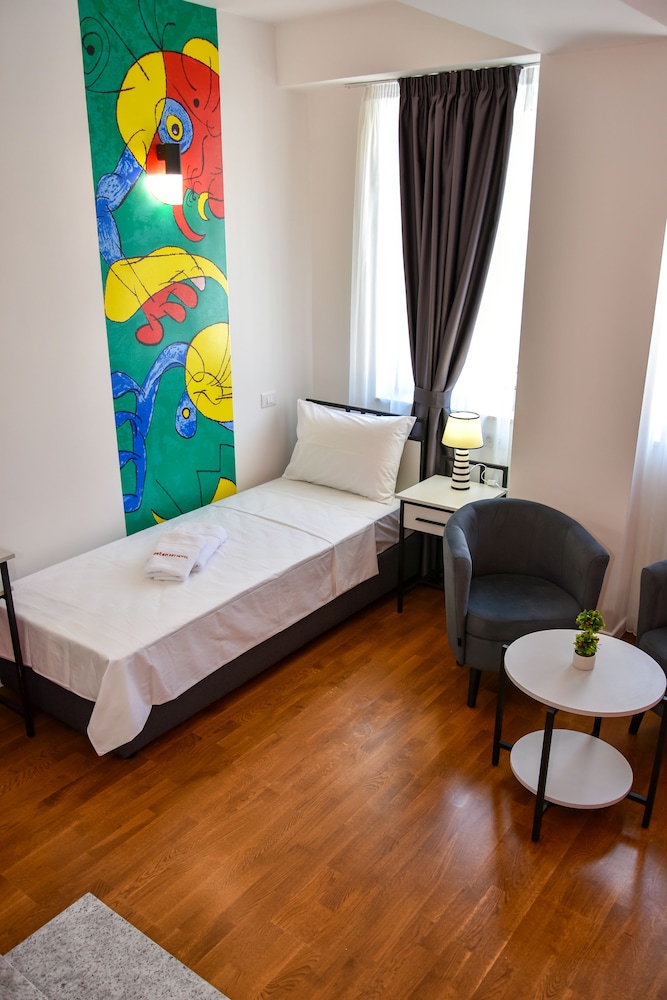 Osten Art Hotel liegt im Herzen von Skopje, nur 5 Gehminuten entfernt von: Makedonija-Platz und Kliment-von-Ohrid-Kirche. Dieses Hotel ist 0,5 km von Gedenkhaus von Mutter Teresa und 0,6 km von Krieger auf einem Pferd entfernt. Buche einen Aufenthalt in einem der 5 Zimmer mit Flachbildfernseher. Ein WLAN-Internetzugang (kostenlos) ist ebenso verfügbar wie Kabelempfang. Die Badezimmer verfügen über Duschen, Regenduschen und kostenlose Toilettenartikel. Zur Austattung gehören Schreibtische und separate Sitzecken; die Zimmer werden täglich sauber gemacht. Entfernungen werden bis auf 0,1 Kilometer gerundet.