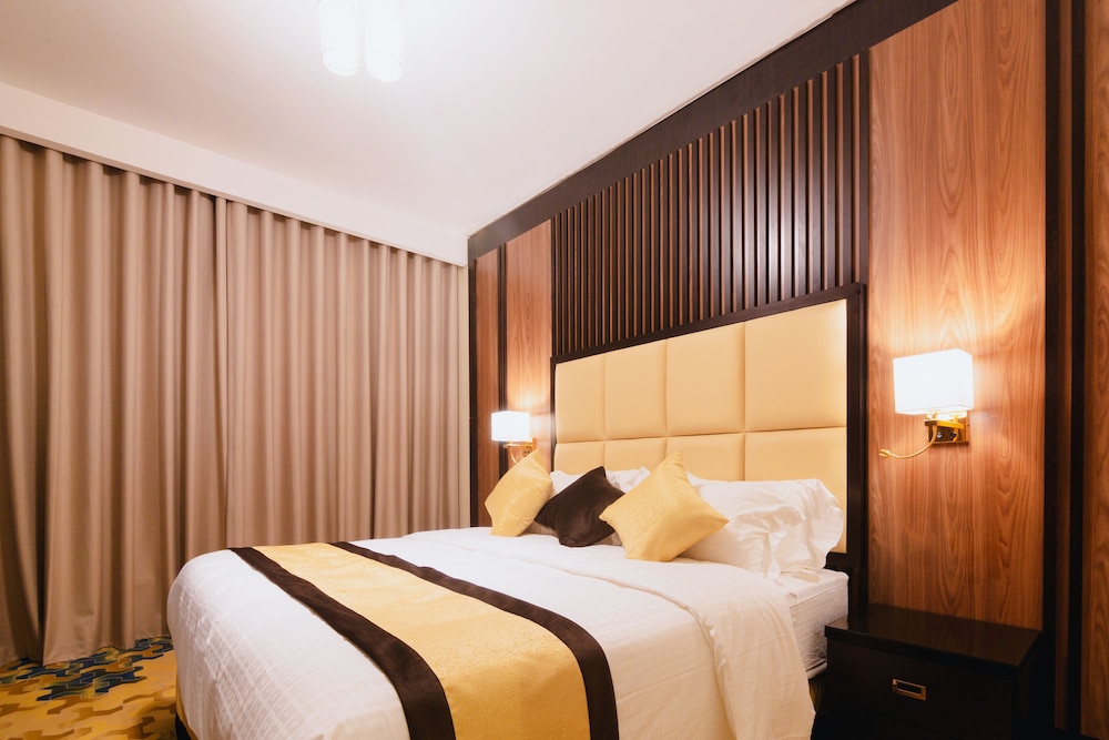 Golden Ship Hotel liegt im Herzen von Riad, nur wenige Schritte von Mouwasat Krankenhaus und 8 Gehminuten von Granada Business Park entfernt. Dieses Hotel ist 22,9 km von Al-Batha-Markt und 1 km von Granada Mall entfernt. Fühl dich in einem der 90 klimatisierten Zimmer, die über private Whirlpools im Freien und einen Smart-TV verfügen, wie zu Hause. Ein WLAN-Internetzugang (kostenlos) ist ebenso verfügbar wie Satellitenempfang. Zur Austattung gehören Safes und separate Sitzecken sowie Telefone, mit denen du kostenlose Ortsgespräche führen kannst. Entfernungen werden bis auf 0,1 Kilometer gerundet.