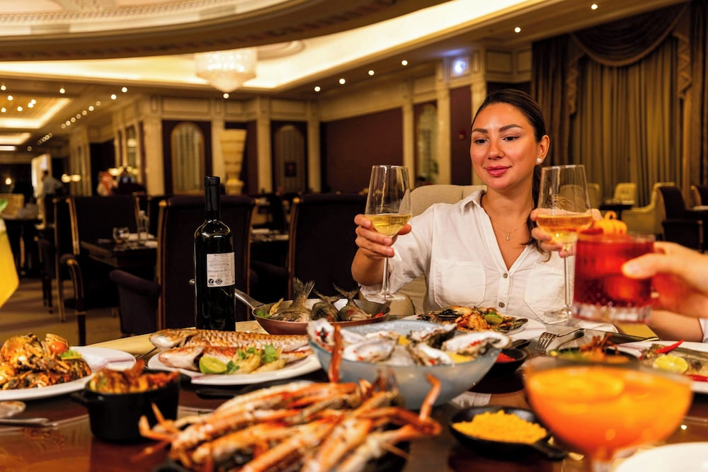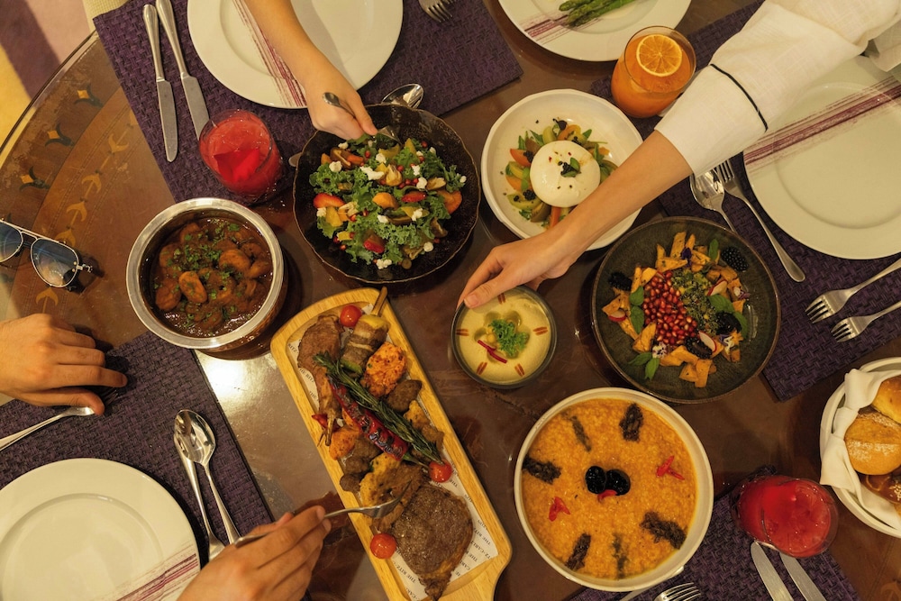 Zum Angebot gehören ein rund um die Uhr geöffnetes Businesscenter, kostenlose Zeitungen in der Lobby und ein Textilreinigungsservice. Wenn du eine Veranstaltung in Riad planst, ist dieses Hotel eine gute Wahl, denn zu den 62408 Quadratfuß (5800 Quadratmeter) großen Veranstaltungsräumlichkeiten zählen ein Konferenzzentrum und 12 Tagungsräume. Der Flughafentransfer (auf Anfrage) ist kostenpflichtig; außerdem gibt es vor Ort Folgendes: Parken ohne Service (kostenlos). Entspann dich im Wellnessbereich, der Massagen, Körperbehandlungen und Gesichtsbehandlungen bietet. Du kannst von folgenden Freizeiteinrichtungen profitieren: Fitnesscenter, Innenpool und Sauna. Zu den Highlights, die dieses Hotel bietet, gehören zudem kostenloses WLAN, ein Concierge-Service und ein Hochzeitsservice. Lass deinen Tag bei einem Drink an der Bar/Lounge ausklingen. Gegen Gebühr wird täglich von 06:30 Uhr bis 11:00 Uhr ein nach Wunsch zubereitetes Frühstück angeboten. Diese Unterkunft hat ihre offizielle Sternebewertung von folgender Organisation oder Institution erhalten: Saudi Ministry of Tourism.- Aufpreis für das nach Wunsch zubereitete Frühstück: ca. 150 SAR bis 200 SAR für Erwachsene und ca. 50 SAR bis 100 SAR für Kinder