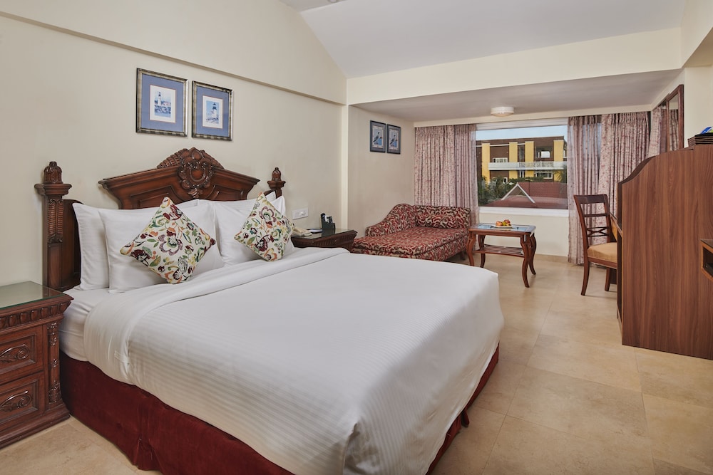 MAYFAIR Heritage, Puri besticht durch eine zentrale Lage in Puri, nur 5 Minuten Fahrt entfernt von: Jagannath-Tempel und Sudarshan Crafts Museum. Dieses Hotel in Strandnähe ist 1,8 km von Strand von Puri und 2,1 km von Vishnu Temple entfernt. Fühl dich in den 34 Zimmern, die individuell ausgestattet sind und kostenlose Minibar und DVD-Player bieten, wie zu Hause. LCD-Fernseher, mit denen du Premium-TV-Sender sehen kannst, und ein WLAN-Internetzugang (kostenlos) sind vorhanden. Es gibt eigene Badezimmer, die über Haartrockner und Bademäntel verfügen. Zur Austattung gehören Telefone ebenso wie Safes und Schreibtische. Entfernungen werden bis auf 0,1 Kilometer gerundet.