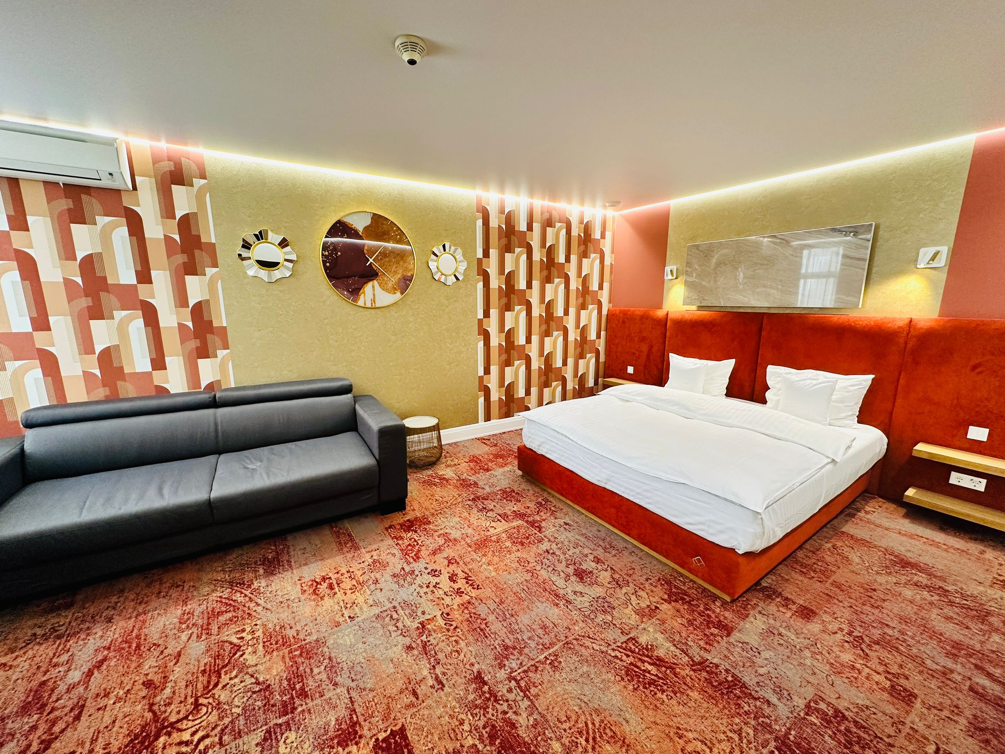 Diese Villa liegt im historischen Zentrum von Sibiu, nur wenige Schritte vom Großen Markt, dem Brukenthal-Museum, dem Haus der Künste und der Thalia Hall entfernt und ist ideal für Urlaubs- und Geschäftsreisende. Der Bahnhof ist 5 Gehminuten entfernt und der internationale Flughafen Sibiu ist in 10 Autominuten erreichbar. Diese Villa wurde 1840 erbaut und 2021 komplett restauriert. Sie war einst das Zuhause des Komponisten Jan Levoslav Bella. Das Interieur ist mit musikalisch thematisierten Kunstwerken ausgestattet, die Eleganz des 19. Jahrhunderts mit modernem Design verbinden. Das Hotel bietet 14 Zimmer, ein Restaurant mit Frühstück, Konferenzeinrichtungen, WLAN und einen luxuriösen Frühstücksbereich. Wählen Sie zwischen Doppelzimmern oder geräumigen Apartments mit Wohn- und Schlafzimmern, die mit massiven Buchenholzmöbeln eingerichtet sind. Die Apartments verfügen über ein Doppelbett, ein Schlafsofa, zwei Flachbild-TVs mit Satelliten-/Kabelanschluss, Internetzugang, Schreibtischbeleuchtung, einen Schminktisch, einen Safe, eine Minibar und ein Telefon. Jedes Zimmer verfügt über ein eigenes Bad mit Badewanne und Haartrockner, Doppel- oder Kingsize-Betten, Klimaanlage und individuell regulierbare Heizung.