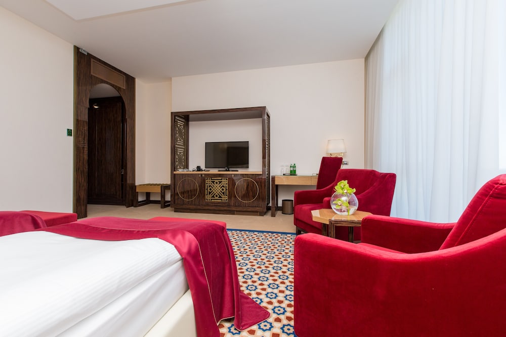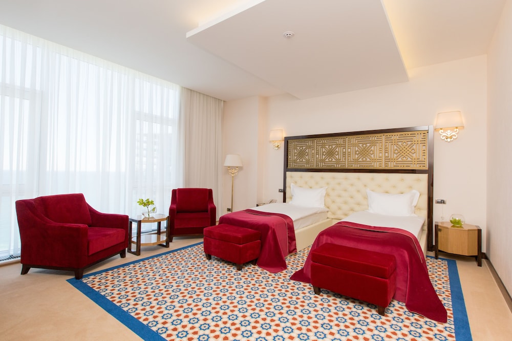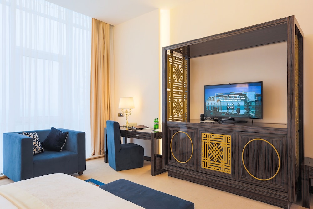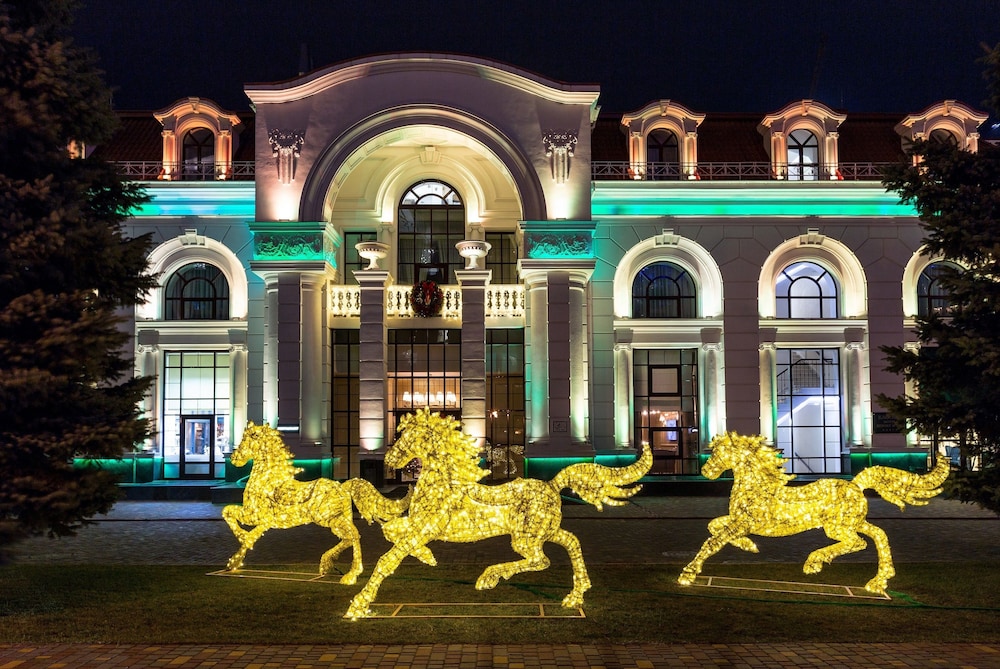 Zum Angebot gehören ein kostenloser Internetzugang per Kabel, ein Businesscenter und kostenlose Zeitungen in der Lobby. Wenn du eine Veranstaltung in Odessa planst, ist dieses Hotel eine gute Wahl, denn zu den 1238 Quadratfuß (115 Quadratmeter) großen Veranstaltungsräumlichkeiten zählen ein Konferenzzentrum und ein Tagungsraum. Gegen Aufpreis kannst du den Transferservice vom Flughafen zum Hotel (rund um die Uhr) und den Abholservice vom Bahnhof nutzen. Entspann dich im Wellnessbereich, der Massagen, Körperbehandlungen und Gesichtsbehandlungen bietet. Sicher wirst du die Freizeiteinrichtungen zu schätzen wissen, zu denen Folgendes gehört: 2 Innenpools, Fitnesscenter und Sauna. Kostenloses WLAN, ein Concierge-Service und ein Friseursalon stehen ebenfalls zur Verfügung. Genieße moderne, europäische Küche im Kadorr, einem ein Gourmetrestaurant, das eine Bar/Lounge bietet, oder bleib bequem auf deinem Zimmer und nutz den Zimmerservice (rund um die Uhr). Gegen Gebühr wird täglich von 08:00 Uhr bis 11:00 Uhr ein kontinentales Frühstück angeboten.Du wirst gebeten, die folgenden Gebühren direkt in der Unterkunft zu zahlen. Gebühren beinhalten möglicherweise geltende Steuern: