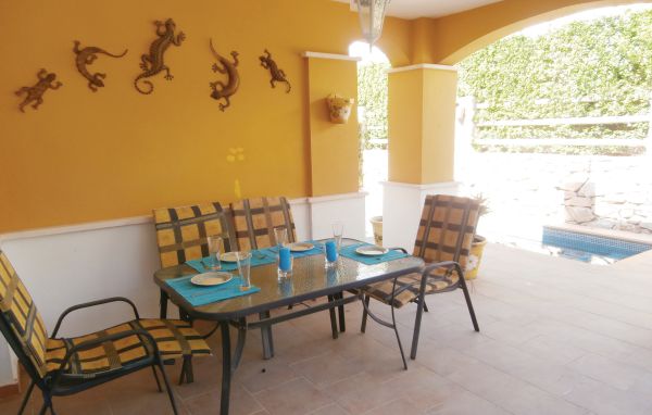 Im Mar Menor Golf Resort finden Sie dieses reizende Ferienhaus. Es bietet ausreichend Platz für die ganze Familie auf 2 Etagen. Im Erdgeschoss befinden sich die Schlaf- und Badezimmer, sowie die Küche und das Wohnzimmer. Die schöne und gemütliche Inneneinrichtung lässt Sie sich gleich wie zuhause fühlen! Die fantastische Sonnenterrasse auf der oberen Etage richtet Ihren Blick auf den Gartenbereich. Hier können Sie die Sonne genießen und sich an besonders warmen Tagen im tollen Privatpool abkühlen. Dieses Ferienhaus ist der perfekte Ort für einen Urlaub mit Ihren Liebsten und ganz wichtig: mit Ihrem Vierbeiner!