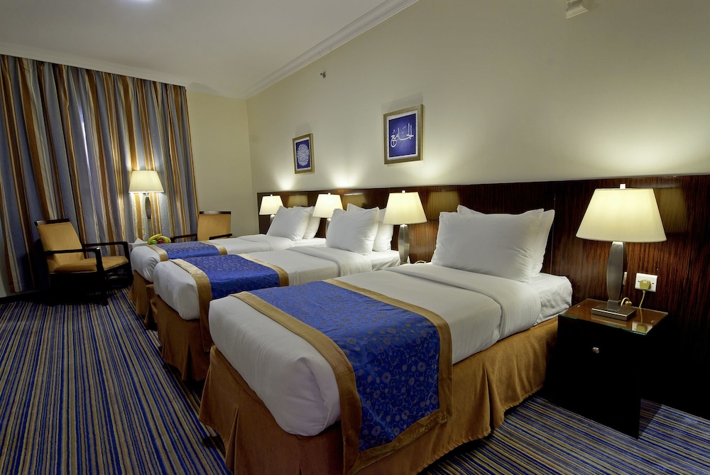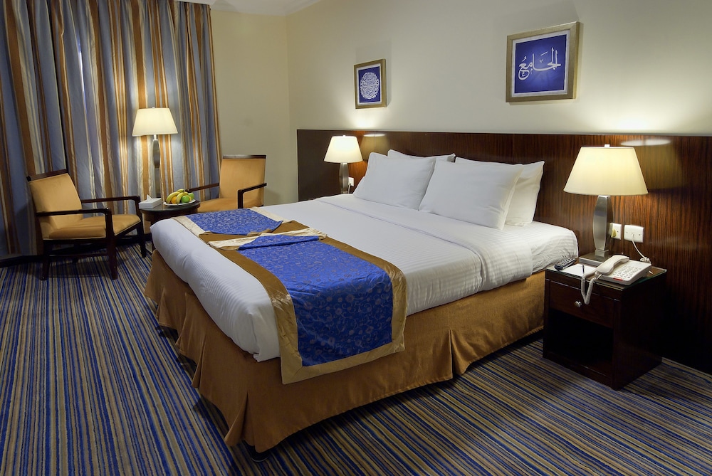 With a stay at Dar Al Eiman Al Manar in Medina (Medina City Center), you'll be within a 15-minute walk of Al Haram and Prophet's Mosque. This hotel is 2.1 mi (3.4 km) from Baqi Cemetery and 2.8 mi (4.6 km) from Al Noor Mall. Make yourself at home in one of the 252 air-conditioned rooms featuring refrigerators and LCD televisions. Complimentary wireless Internet access keeps you connected, and cable programming is available for your entertainment. Private bathrooms with showers feature complimentary toiletries and slippers. Conveniences include phones, as well as safes and desks. Distances are displayed to the nearest 0.1 mile and kilometer.