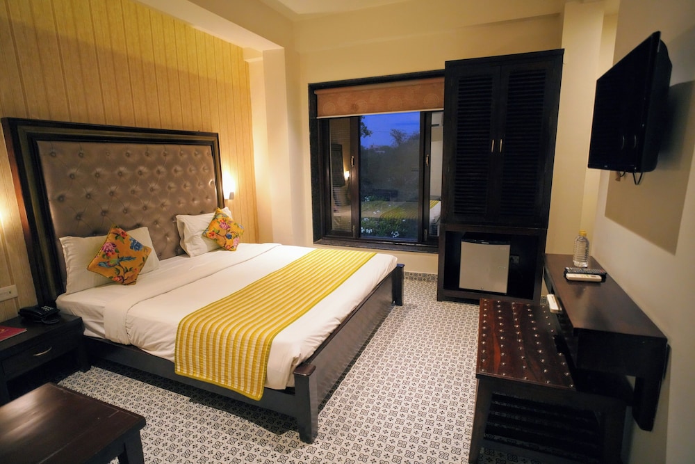 The Raj Vilas in Agra (Tajganj) ist nur 10 Minuten Fahrt entfernt von: Taj Mahal und TDI Mall. Dieses Hotel ist 2,5 km von Kalakriti Culture and Convention Centre und 2,8 km von Moschee und Jawab entfernt. Fühl dich in einem der 22 klimatisierten Zimmer mit Minibar und LED-Fernseher wie zu Hause. Ein WLAN-Internetzugang (kostenlos) ist ebenso verfügbar wie Kabelempfang. Es sind eigene Badezimmer mit Duschen vorhanden, die über kostenlose Toilettenartikel und Hausschuhe verfügen. Zur Austattung gehören Telefone ebenso wie Safes und Schreibtische. Entfernungen werden bis auf 0,1 Kilometer gerundet.