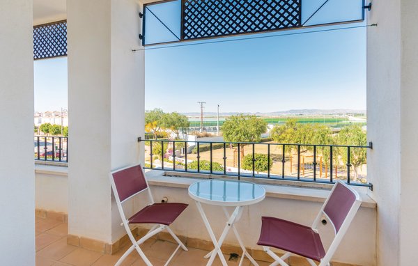 Gut ausgestattete Ferienwohnung in der 2. Etage mit schöner Terrasse mit Blick auf den Pool und den Golfplatz. Mit Klimaanlage im Wohn- und Schlafzimmer.
