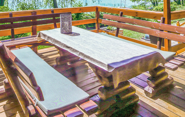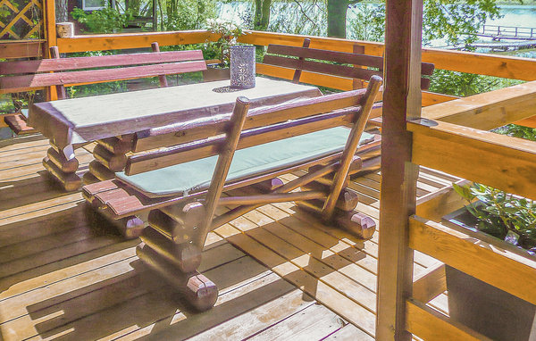 Gehen Sie nach draußen und verbringen Sie die Zeit auf der überdachten Terrasse mit Holzmöbeln. Nehmen Sie Platz auf den Bänken und genießen Sie die Nähe zum Wasser. Lassen Sie den Blick über den See schweifen oder entspannen Sie auf den vorhandenen Sonnenliegen. Erkunden Sie den Gartenbereich, der mit einfachen Sitzgelegenheiten ausgestattet ist, oder gehen Sie direkt zum Ufer, wo Stege ins Wasser führen.