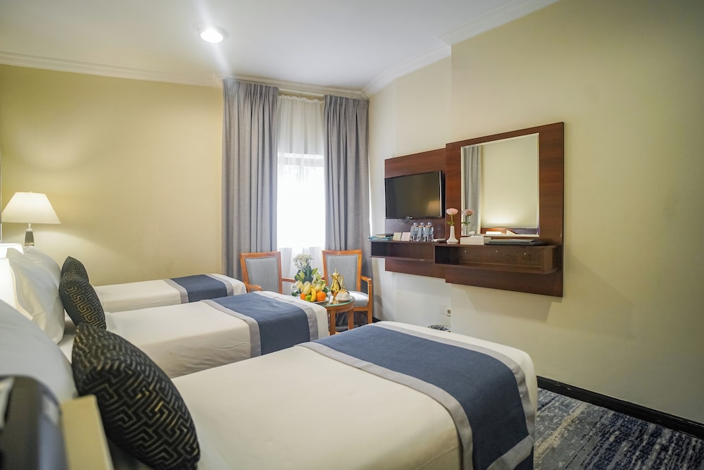 EMAAR AL KHALIL in Mekka (Makkah Stadtzentrum) ist nur 15 Minuten Fußweg entfernt von: Große Moschee von Mekka und Kaaba. Dieses Hotel ist 0,7 km von Die Uhrtürme und 0,8 km von King Fahad Gate entfernt. Fühl dich in einem der 252 klimatisierten Zimmer wie zu Hause. Ein WLAN-Internetzugang (kostenlos) steht zur Verfügung. Zur Austattung gehören Safes, die Zimmer werden täglich sauber gemacht und auf Anfrage erhältst du Folgendes: Bügeleisen/Bügelbretter. Entfernungen werden bis auf 0,1 Kilometer gerundet.