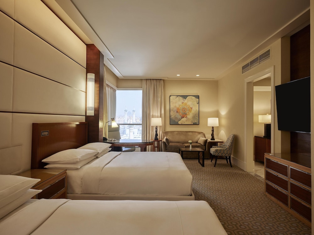 Conrad Jabal Omar Makkah führt dich mitten ins Herz von Mekka, nur 5 Minuten Fußmarsch von Souk Al-Khalil und Große Moschee von Mekka entfernt. Dieses Hotel im luxuriösen Stil ist 0,3 km von King Fahad Gate und 2,3 km von As-Haabee Ausstellung entfernt. Fühl dich in einem der 438 klimatisierten Zimmer mit Minibar und LCD-Fernseher wie zu Hause. Freu dich auf einen kostenfreien Internetzugang per Kabel und WLAN und Premium-TV-Sender. Es gibt eigene Badezimmer mit Badewannen und Duschen (separat), die über Regenduschen und kostenlose Toilettenartikel verfügen. Zur Austattung gehören Safes in Laptop-Größe und Schreibtische; die Zimmer werden täglich sauber gemacht. Entfernungen werden bis auf 0,1 Kilometer gerundet.