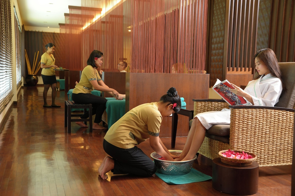 - Für Massageanwendungen sind Voranmeldungen erforderlich. Bitte setze dich dazu vor der Anreise mit diesem Hotel in Verbindung. Die entsprechenden Kontaktinformationen findest du auf deiner Buchungsbestätigung.
